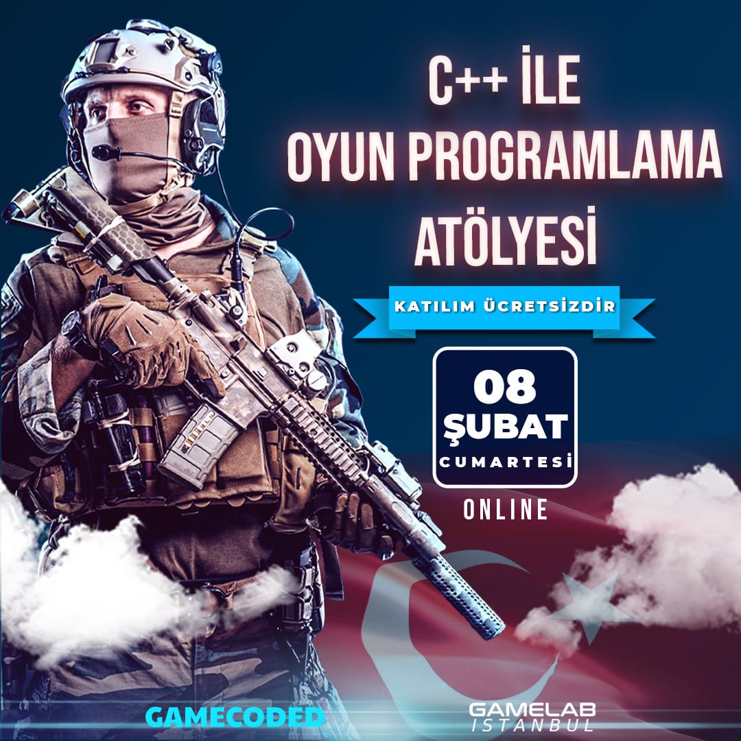 Ücretsiz 1 günlük Profesyonel C++ ile Oyun Programlama Atölyemiz 8 Şubat Cumartesi düzenlenecektir.